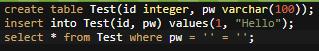 해당 테스트는 온라인 컴파일러를 이용했다.(https://paiza.io/en/projects/new?language=mysql)