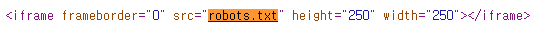 해당 문제에 들어가면 다음과 같은 화면이 나오게 되고, 해당 내용은 robots.txt의 내용이다. 소스에서 페이지의 소스코드를 확인해보면 iframe태그에 의해 출력되는 것을 확인했다.
