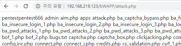 비박스 서버에 테스트를 위한 attack.php 파일을 만들어 본 후, 해당 경로로 접근하면 시스템 명령어가 실행된다.