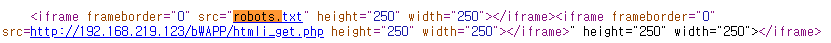 " height="250" width="250"></iframe><iframe frameborder="0" src=http://192.168.219.123/bWAPP/htmli_get.php height="250" width="250"></iframe>