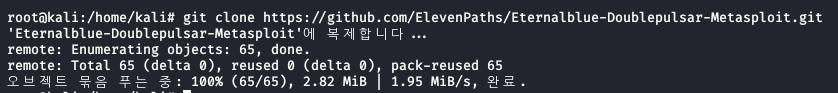공격 PC에서는 칼리 리눅스 OS를 이용하며, github에서 이터널 블루를 설치한다.