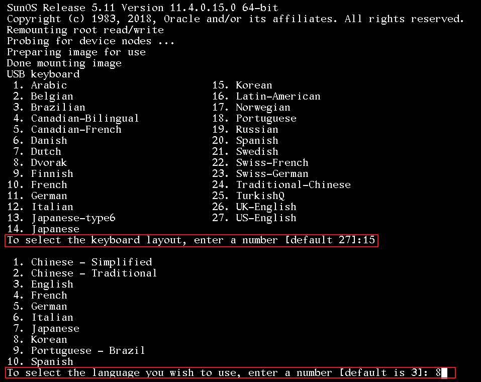 부팅을 하게 되면 키보드 레이아웃(한국어)와 언어(한국어)를 입력하고 엔터키를 누른다.