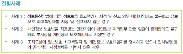 이번 항목에서는 임원급의 자격요건을 충족한 정보보호 최고책임자 및 개인정보 보호책임자를 공식적으로 임명하고 있는지 확인하고 있다.