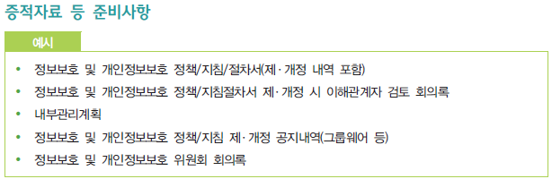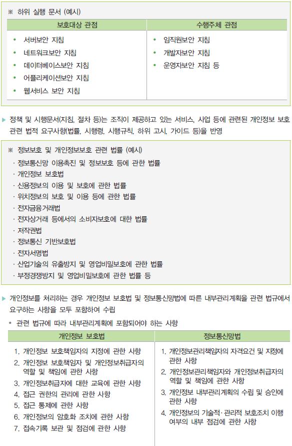 해당 '1.1.5 정책 수립' 항목의 활동을 증빙하기 위한 증적자료 예시는 다음과 같다.
