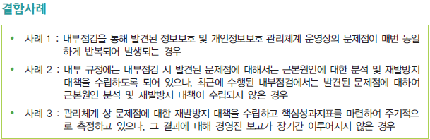 해당 '1.4.3 관리체계 개선' 항목의 활동을 증빙하기 위한 증적자료 예시는 다음과 같다.