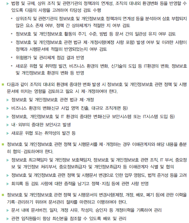 이번 영역에서는 총 64개의 세부 인증기준 중에서 '2.1. 정책, 조직, 자산 관리' 분야에서 '2.1.1 정책의 유지관리' 항목을 확인해보자.