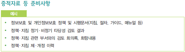 해당 '2.1.1 정책의 유지관리' 항목의 활동을 증빙하기 위한 증적자료 예시는 다음과 같다.
