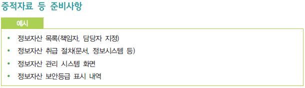 해당 '2.1.3 정보자산 관리' 항목의 활동을 증빙하기 위한 증적자료 예시는 다음과 같다.