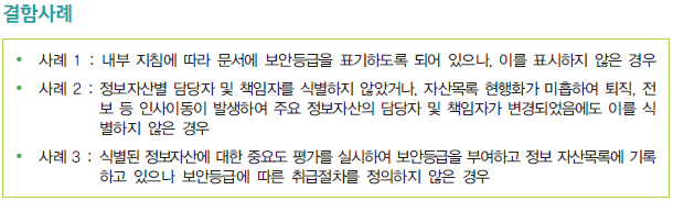 이번 영역에서는 총 64개의 세부 인증기준 중에서 '2.1. 정책, 조직, 자산 관리' 분야에서 '2.1.3 정보자산 관리' 항목을 확인해보자.