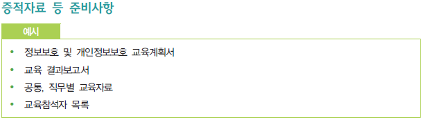 해당 '2.2.4 인식제고 및 교육훈련' 항목의 활동을 증빙하기 위한 증적자료 예시는 다음과 같다.
