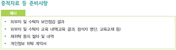 해당 '2.3.3 외부자 보안 이행 관리' 항목의 활동을 증빙하기 위한 증적자료 예시는 다음과 같다.
