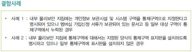 이번 영역에서는 총 64개의 세부 인증기준 중에서 '2.4. 물리 보안' 분야에서 '2.4.1 보호구역 지정' 항목을 확인해보자.