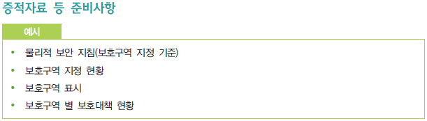 해당 '2.4.1 보호구역 지정' 항목의 활동을 증빙하기 위한 증적자료 예시는 다음과 같다.