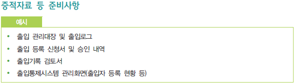해당 '2.4.2 출입통제' 항목의 활동을 증빙하기 위한 증적자료 예시는 다음과 같다.