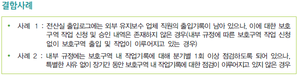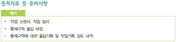 해당 '2.4.5 보호구역 내 작업' 항목의 활동을 증빙하기 위한 증적자료 예시는 다음과 같다.