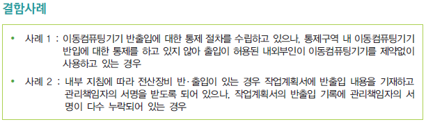 이번 영역에서는 총 64개의 세부 인증기준 중에서 '2.4. 물리 보안' 분야에서 '2.4.6 반출입 기기 통제' 항목을 확인해보자