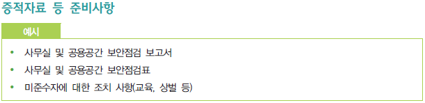 해당 '2.4.7 업무환경 보안' 항목의 활동을 증빙하기 위한 증적자료 예시는 다음과 같다.