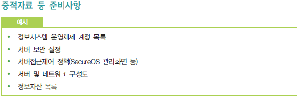 해당 '2.6.2 정보시스템 접근' 항목의 활동을 증빙하기 위한 증적자료 예시는 다음과 같다.
