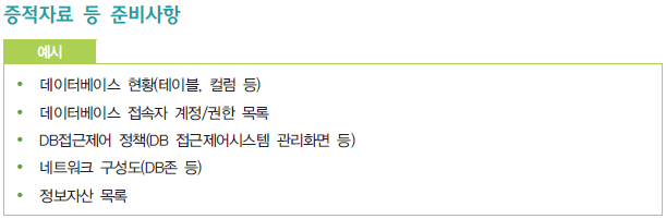 해당 '2.6.4 데이터베이스 접근' 항목의 활동을 증빙하기 위한 증적자료 예시는 다음과 같다.