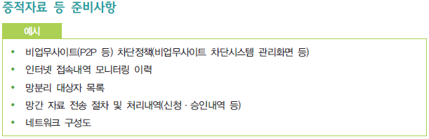 해당 '2.6.7 인터넷 접속 통제' 항목의 활동을 증빙하기 위한 증적자료 예시는 다음과 같다.