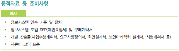 해당 '2.8.1 보안 요구사항 정의' 항목의 활동을 증빙하기 위한 증적자료 예시는 다음과 같다.