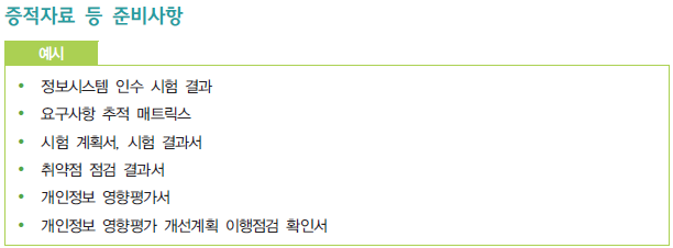 해당 '2.8.2 보안 요구사항 검토 및 시험' 항목의 활동을 증빙하기 위한 증적자료 예시는 다음과 같다.