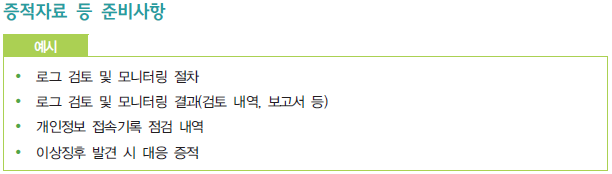 해당 '2.9.5 로그 및 접속기록 점검' 항목의 활동을 증빙하기 위한 증적자료 예시는 다음과 같다.