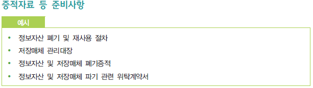 해당 '2.9.7 정보자산의 재사용 및 폐기' 항목의 활동을 증빙하기 위한 증적자료 예시는 다음과 같다.