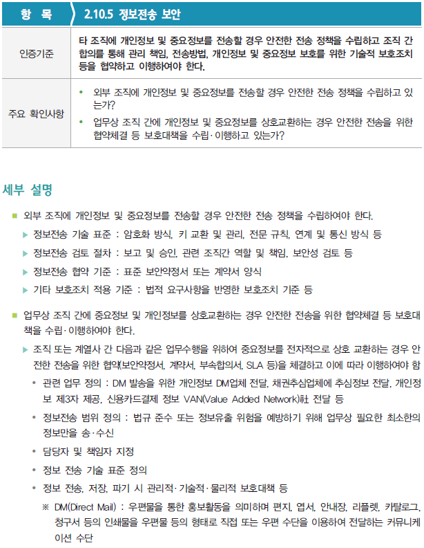 이번 영역에서는 총 64개의 세부 인증기준 중에서 '2.10. 시스템 및 서비스 보안관리' 분야에서 '2.10.5 정보전송 보안' 항목을 확인해보자