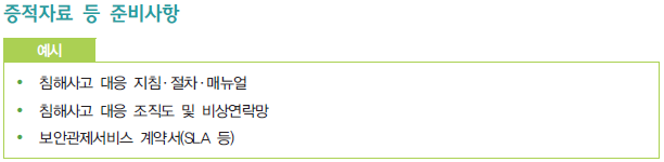 해당 '2.11.1 사고 예방 및 대응체계 구축' 항목의 활동을 증빙하기 위한 증적자료 예시는 다음과 같다.