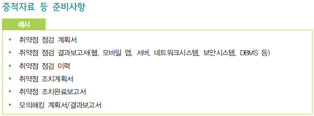 해당 '2.11.2 취약점 점검 및 조치' 항목의 활동을 증빙하기 위한 증적자료 예시는 다음과 같다.