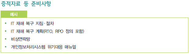 해당 '2.12.1 재해·재난 대비 안전조치' 항목의 활동을 증빙하기 위한 증적자료 예시는 다음과 같다.