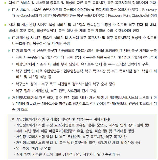 이번 영역에서는 총 64개의 세부 인증기준 중에서 '2.12. 재해복구' 분야에서 '2.12.1 재해·재난 대비 안전조치' 항목을 확인해보자