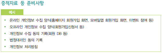 해당 '3.1.2 개인정보의 수집 동의' 항목의 활동을 증빙하기 위한 증적자료 예시는 다음과 같다.