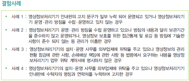 해당 '3.1.6 영상정보처리기기 설치·운영' 항목의 활동을 증빙하기 위한 증적자료 예시는 다음과 같다.
