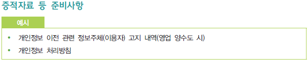 해당 '3.3.3 영업의 양수 등에 따른 개인정보의 이전' 항목의 활동을 증빙하기 위한 증적자료 예시는 다음과 같다.