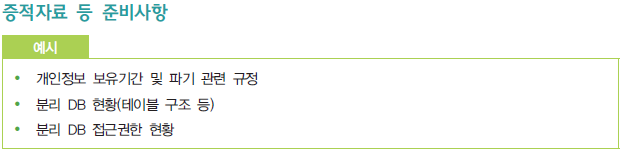 해당 '3.4.2 처리목적 달성 후 보유 시 조치' 항목의 활동을 증빙하기 위한 증적자료 예시는 다음과 같다.