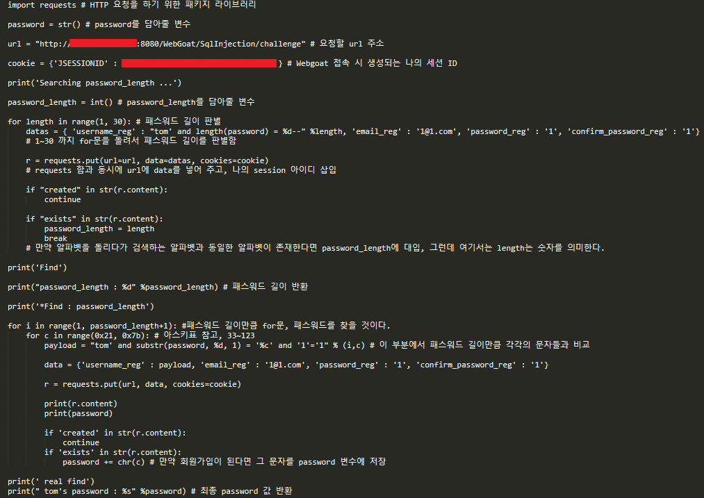 이제 파이썬 코드를 이용해서 패스워드의 길이를 구한 다음, 패스워드를 구해보도록 하자