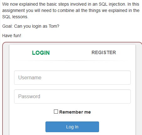 이 값을 로그인 페이지에 제출하게 되면 정상적으로 tom의 계정으로 로그인 되는 것을 확인할 수 있다.