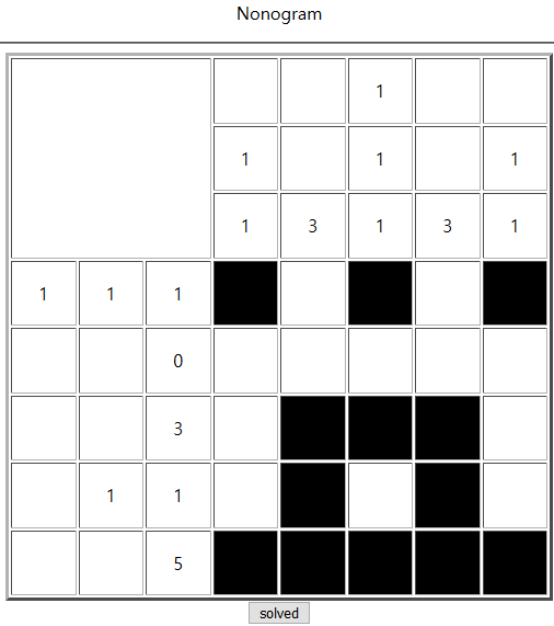 3번 문제는 350점짜리 문제이며, 문제를 클릭하게 되면 네모로직 문제가 나오게 된다.