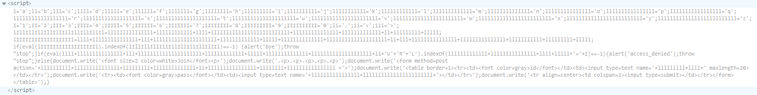 join.php의 소스코드를 확인해보면 javascript가 난독화 되어 있는 것을 확인 할 수 있다.