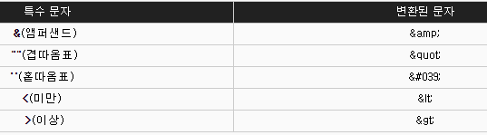 htmlspecialchars() 함수 : 문자열에서 특정한 특수문자를 HTML 엔티티로 변환한다. 이 함수를 사용하면 악성 사용자로부터 XSS 공격을 방지할 수 있다.