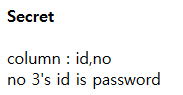 no=3 페이지에서 컬럼에는 id,no가 있고 passowrd는 id에 있다고 한다.
