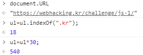 해당 페이지의 URL을 ul변수에 저장하고, indexof(".kr")를 이용하여 URL의 ".kr"의 index번호를 찾는 것이다.