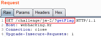 200 ok로 정상적으로 응답이 왔으며, url뒤에 인자값으로 ?getFlag 라는 힌트를 얻을 수 있었다.