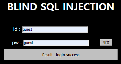id : guest / pw : guest 로 로그인을 시도해보면 login success가 뜨게 된다.