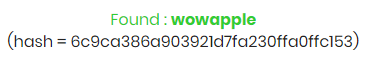 해당 패스워드는 md5 해쉬값으로 확인했다.