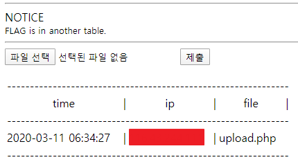 Injection을 시도할 곳을 찾는 중에 filename에 컬럼 순서는 '파일이름' , 타임스탬프(INT), '아이피' 순으로 입력하면 공격이 가능한 것으로 보인다.